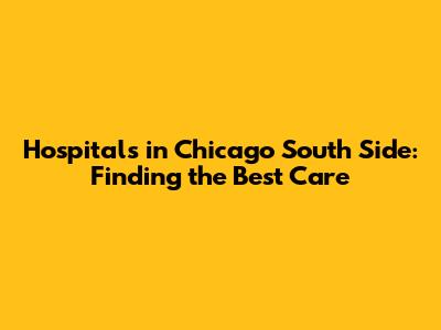 Navigating the healthcare landscape on Chicago's South Side requires understanding the available options and making informed decisions. The hospitals highlighted in this article represent some of the leading institutions dedicated to providing quality care to the community. By considering factors such as specialized services, hospital ratings, and insurance coverage, individuals can choose the right hospital to meet their specific needs. Access to quality healthcare is essential for maintaining health and well-being, and the South Side's hospitals play a vital role in ensuring that residents have access to the medical services they need. Remember to consult with your healthcare provider for personalized recommendations and guidance in making healthcare decisions.