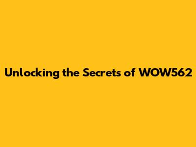 Unlocking The Secrets Of WOW562
