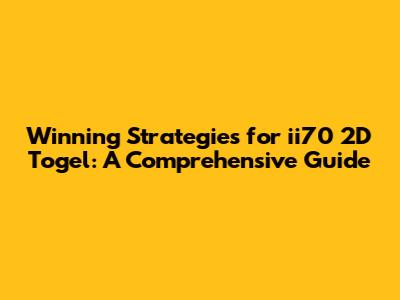 Winning Strategies For Ii70 2D Togel: A Comprehensive Guide